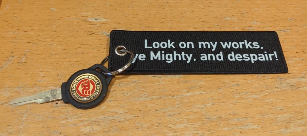 Death’s horse is named Despair in the Darksiders Series (I haven’t played them yet), so I wanted to name my bike Despair as well. That then reminded me of a famous quote from Percy Bysshe Shelly’s poem Ozymandias1: